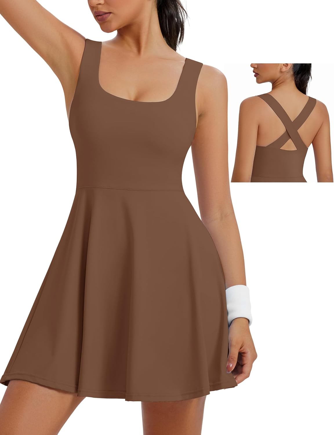 athletic dress Womens Square Neck Tennis Dress Built in Shorts Removable Bra Golf Athletic Workou Yoga Wear Bylovelyaa 2025年9月18日